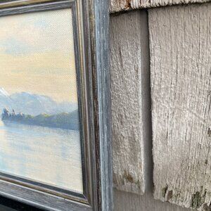 Lake Taupo New Zealand Fisherman Lake Mountains Original Art A Christe 10.5 x 7.5" Oil on canvas I think. Very high grade condition, , frame is in amazing condition.