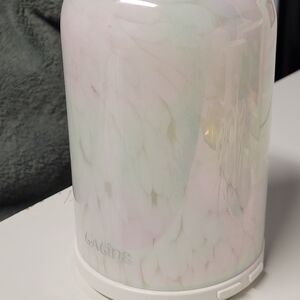 This beautiful diffuser by Laline features a pearlescent finish with delicate pastel swirls. It has 'Light' and 'Mist' buttons on the base for easy operation. It uses 24V power. In good condition.