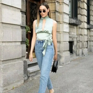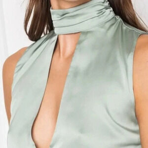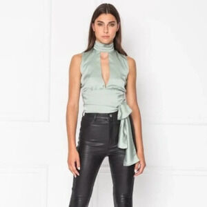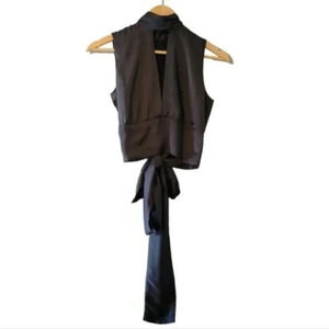 Lamarque Opal Cropped Wrapped High Neck Sleeveless Blouse Black Size Small.