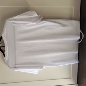 Elegant white tee with a deep V-neck. Features ruched front detail. Perfect for casual wear. Fits slightly oversized and could work for a medium as well.