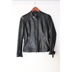 Lamarque Women's Size Small Black Jacket Leather Full Zip Motorcycle Short Coat