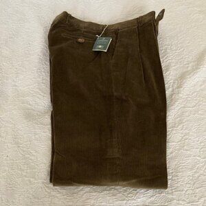 Lambourne English dark forest green double pleated corduroy pants size 38 NEW