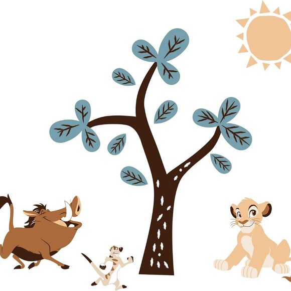 Bring the magic of Disney's Lion King into your little one's room with Lambs & Ivy's Adventure Tree wall decal set. Featuring Simba and a tree shape, this decal set adds a playful touch to any nursery or playroom. Made with high-quality vinyl, these decals are perfect for decorating walls and can be easily removed without damaging the surface. The set includes multiple decals, allowing you to create a unique and customized look. With a theme of "Baby" and a character family of "Disney," this decal set is perfect for any young Lion King fan. The decals are suitable for walls and can be arranged in any pattern to fit your space. Whether you're creating a jungle-themed nursery or adding a touch of Disney magic to your child's room, the Lambs & Ivy Disney Baby Lion King Adventure Tree with Simba Wall Decal Stickers is an adorable and versatile addition.