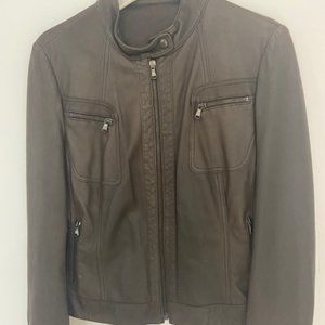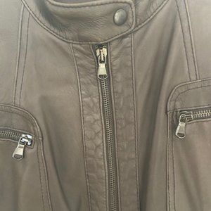 Lambskin jacket, purchased in Florence, Italy. Nice brown, a little taupe. Beautiful, soft and supple leather. Nice cut, zippers on the pockets and cuffs. Beautiful details on the back of the jacket and on the sleeves.