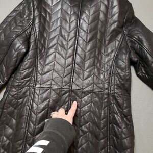 Beautiful buttery soft Lamb leather jacket. Excellent condition with some small marks on the back as pictured. Not really noticeable and I think is just the way it was made. Photos included.