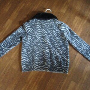 Cute vintage 70% Lambswool/Angora Zebra print cardigan. Size Small . Has imitation fur collar . Very Kitsch.