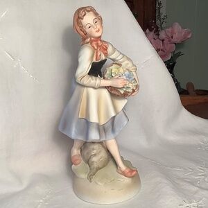 Delicate flowing dress with soft colours. Lovely porcelain vintage piece. 9 inches tall by 4 inches wide and 3.5 inches deep. Excellent condition. Signed “Lamour China Japan Hand Painted. Sticker reads “ An Enterprise Exclusive Toronto Canada”.