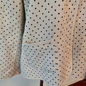 Lovely cream tone blazer jacket with black polka dots all over. Hidden snap closure. Unbranded.