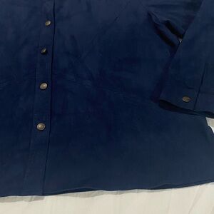 Lana Lee fux suede oversized blue buttons down cowgirl top