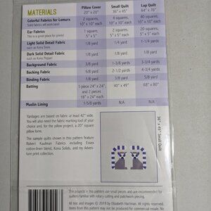 Lana Lemur quilt pattern by Elizabeth Hartman. Colored booklet, 22 pages. Includes instructions to make pillow cover, small and lap sized quilts.