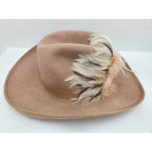 Lancaster Cowboy Hat Women's Tan 100% Wool Feather Trim Sonni 55cm Made In USA