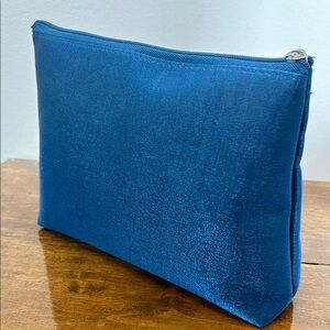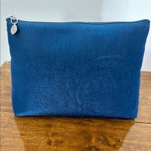 Lancôme Paris Blue Cosmetic Bag Floral Makeup Purse Organize Travel Zipper Seude