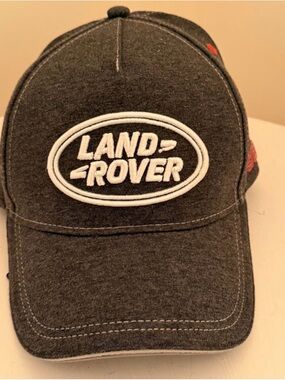 Classic Land Rover baseball cap with a bold embroidered logo. Dark gray fabric with white logo detail. Comfortable, casual style. Great for everyday wear.