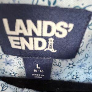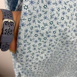 Lands’ End Blue Ditsy Floral Tunic Blouse with Side Pockets Large