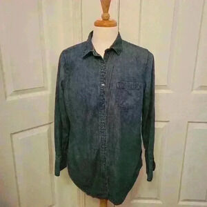 Lands End Denim Button Front Western Cowgirl Top Women's Size 16T