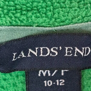 This contemporary sweater by Lands' End is made of green polar fleece. It has long sleeves, a front 1/4 zip, and boasts "Polartec Aircore 100" technology. Great sweater to wear around the house or to use as a layer for going outside.