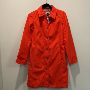 Lands End Jacket Orange Button Up Trench Coat