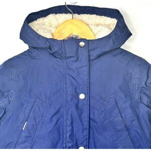 Lands End Kids Jacket Down Filled Sherpa Lined Hooded Grow-A-Long Coat Blue L