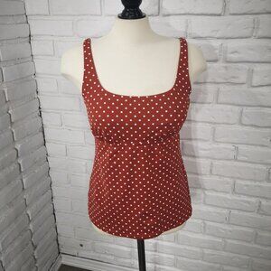 Lands' End Ladies Size 10 Rust w/ White Polka Dots 2 Piece Tankini Bathing Suit