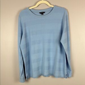 Lands End Light Blue Sweatshirt Casual Crewneck Striped Design Size Large
