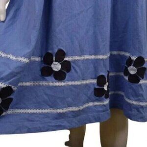 Land's End Long Sleeve Midi Dress Floral Embroidered Blue Size 14
