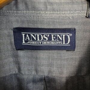 Lands' End Men's Bluish-Gray Herringbone Long Sleeve Button Up Shirt Size 17-33