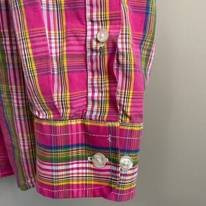 Lands' End Men's Pink Plaid Long Sleeve Button-Up Shirt Large Western Preppy
