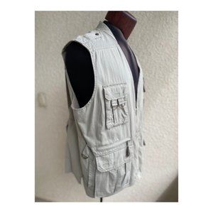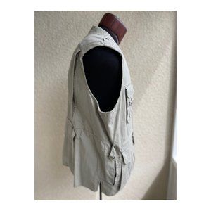 Lands End Men's Utility Vest Active Safari Field Fishing Travel Sz L Tan Khaki