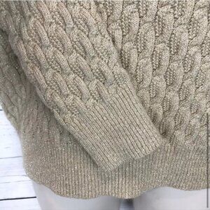 Lands End Metallic Cable Knit V-Neck Sweater Women’s M Gold Long Sleeve Pullover
