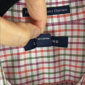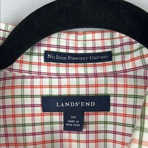 Lands' End No Iron Pinpoint Oxford Multicoloured Plaid Blouse with Classic Style Size 14T