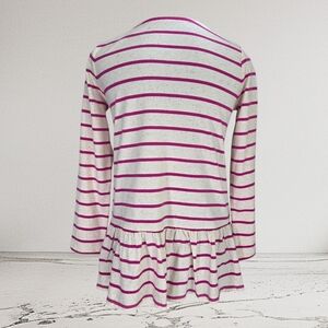 Lands' End Pink and White Striped 3/4 Sleeve Top With Ruffle In Back Size Small