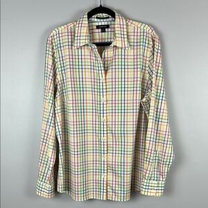 Lands' End No Iron Pinpoint Oxford Plaid Multicoloured Casual Button Down Blouse 16T