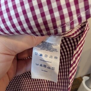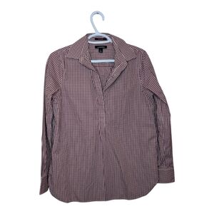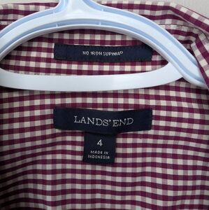 Lands End Red White Gingham Plaid 1/4 Button Women's Size 4 Dress Shirt