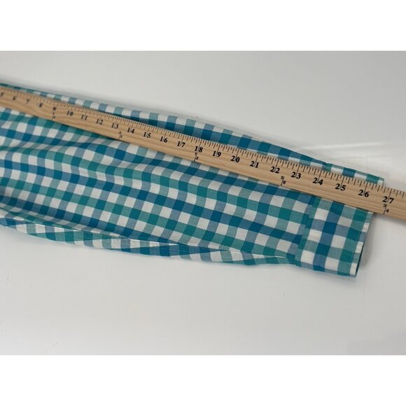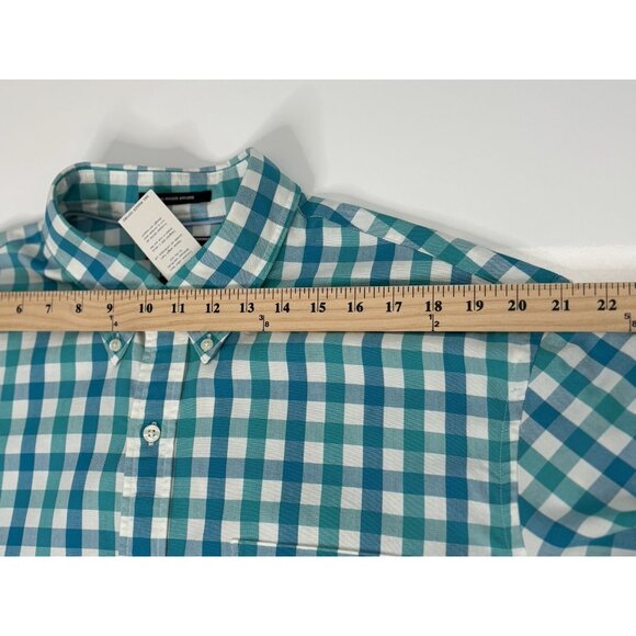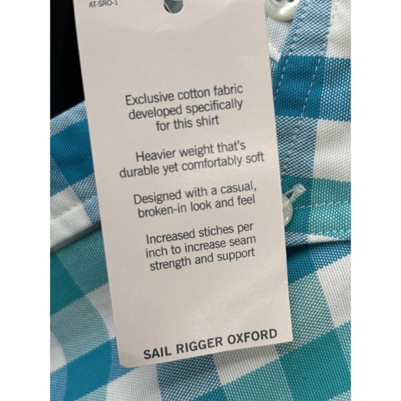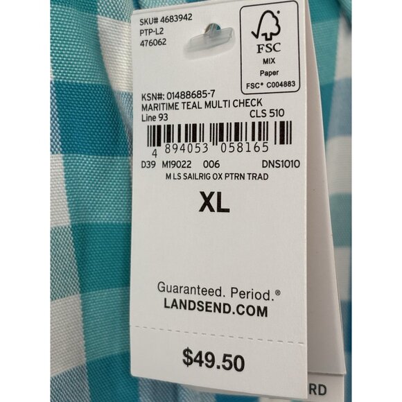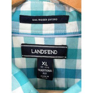 Lands' End Sail Rigger Oxford Teal Multicheck Button Shirt Mens XL 17-17.5 NWT