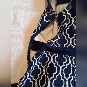 Lands' End women's size 6 sleeveless fit & flare dress Geometric print stretch fabric navy & white EUC