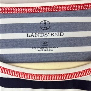 Lands’ End UPF 50 Rash Guard Blue and White Striped Shirt with Red Trim Size 0X