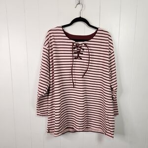 Lands End Women's Long Sleeve Heavyweight Jersey Lace Front Top Red Pink size 1X