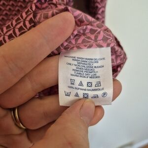 Lands’ End Women’s Pink Geometric Print Non-Iron Button Shirt – Size 10