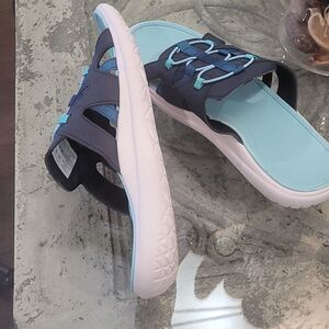 Lands End Womens Slides Water Sandals Blue White Lightweight Slip Ons 11