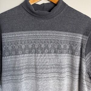 Lands' End Women's Sweater Long Sleeve Fair Isle Turtle Neck Lightweight Gray XL
