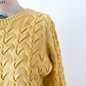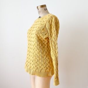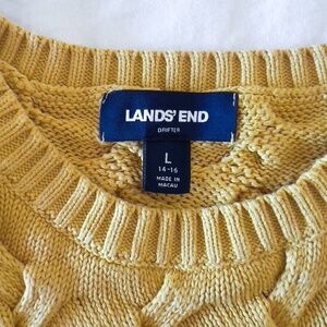 Land's End Yellow Cotton Knit Pullover Drifter Sweater Preppy Classic - Large