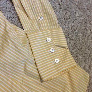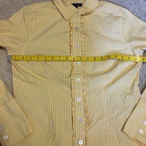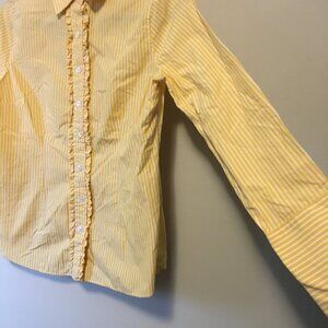 Lands' End Yellow & White Pinstripe Ruffle Trim Button Down Shirt