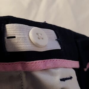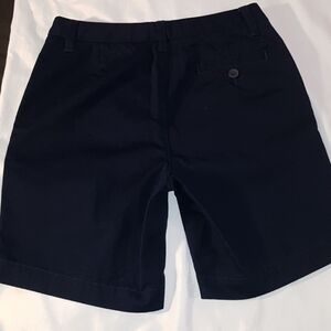 EUC girls Lands End blue shorts with two side front pockets one back button pocket the waist is adjustable has a zipper fly they are stretchy no defects I see