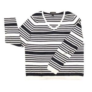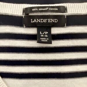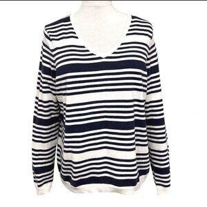 Lands' End navy & white striped v-neck pullover sweater. Women's size L (14-16)