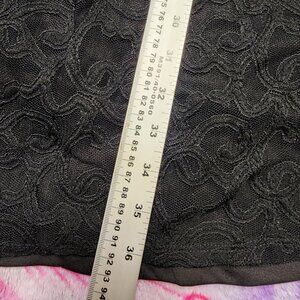 Elevate your evening look with this stunning black lace midi dress from Lane Bryant, size 18. Featuring an intricate lace overlay, 3/4 sleeves, and a flattering waistline detail, this dress is perfect for cocktail parties, formal events, or special occasions. Made from 100% nylon (shell) and lined with 100% polyester for added comfort. The V-neckline and ruched bodice enhance its feminine appeal. In excellent condition, this dress combines elegance and style effortlessly.