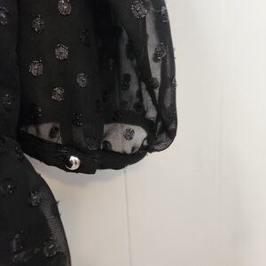 Lane Bryant Black Sheer Polka Dot Long Sleeve V-Neck Blouse Top Fancy Dressy 18