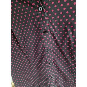 Lane Bryant Button Up Shirt Women’s 14 16 Black Pink Polka Dot Short Sleeve Top