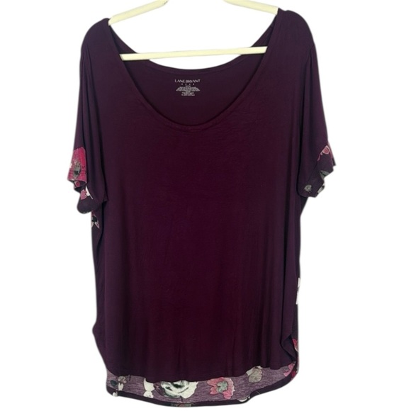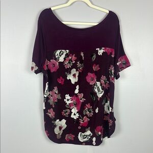 Lane Bryant Casual Purple Floral Back Detail Short Sleeve Top Size 14/16