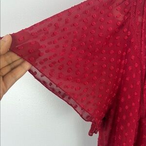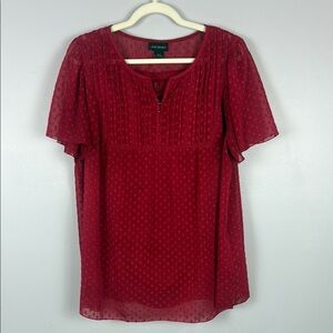Lane Bryant Casual Red Sheer Tank Smocked Flutter Sleeve Blouse Size 18/20