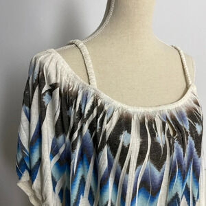 Lane Bryant Factory Boho Linen Top Popover Size 26/28W Aztec Belt Cold Shoulder